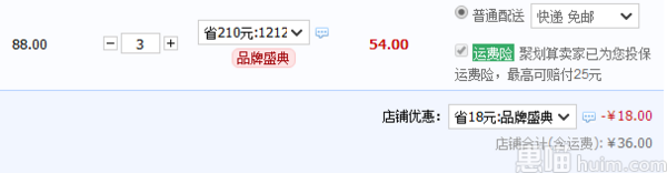天猫旗舰店售价18元,参加买3免1,拍3支,系统自动改价,实付36元包邮到手,折12元/支,价格美腻,喜欢的妹纸不要错过;