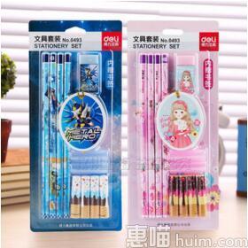 得力文具套装 6.9元包邮,包括4支铅笔+4支笔套+2个握笔护套+橡皮+精美书签