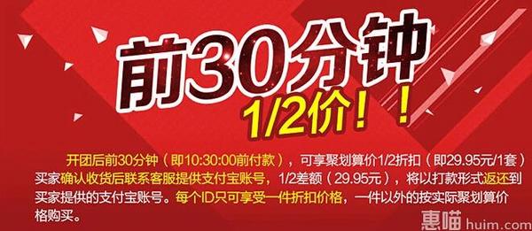 聚划算10点开启29.9元,前30分钟拍下付款的朋友享受半价29.9元,价格实惠,需要的朋友可入手;