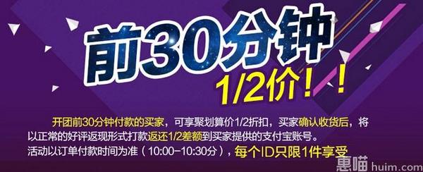 聚划算10点开启29.9元,前30分钟拍下付款得朋友享受半价15元,喜欢的朋友可入手哦;