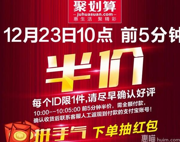 聚划算10点开启39元,前5分钟拍下付款的朋友享受半价19.5元,价格不错需要的朋友可入手;