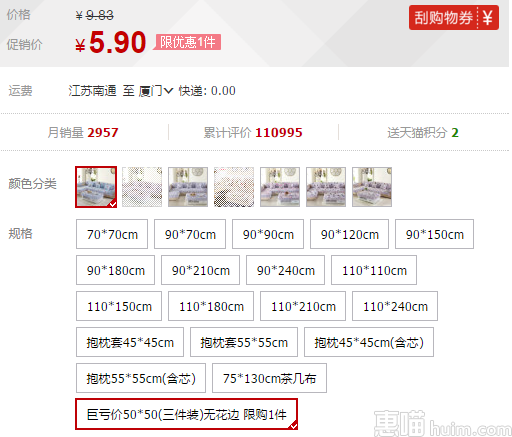 天猫旗舰店售价5.9元,无花边的喔,规格50x50cm,合计3个,算下来一个还不到2块钱,价格白菜,喜欢的赶紧了~