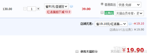 天猫官方旗舰店目前39元在售,拍下可减免19.1元,实付19.9元包邮到手,持平之前推荐好价,姐妹们可以买啦;