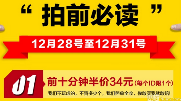天猫旗舰店售价68元,10点开始,前10分钟享受拍下的盆友,可以享受半价返现的优惠,相当于34元到手,新低价了,买还送外套, 同款1号店79元,京东89元;