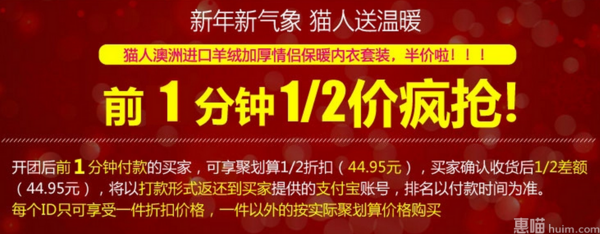 天猫商城售价89.9元,10点开抢,前1分钟付款成功的盆友,可以享受半价返现的优惠,相当于44.9元到手;