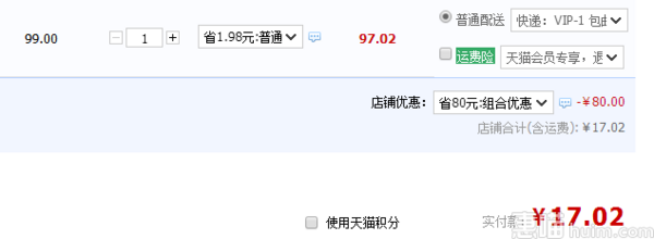 天猫旗舰店售价97元,可以领取店铺80元优惠券,实付17元包邮到手,超大一瓶,比上次推荐的还便宜,可以用到天荒地老了;