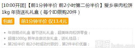 天猫聚划算10点开启26.8元,前1分钟付款可享受半价13.4元,买来囤年货非常好噢!