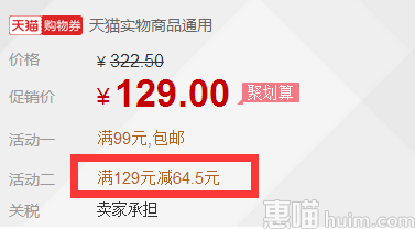 天猫官方旗舰店目前129元在售,10点开抢,前10分钟,拍下直接半价,系统直接改价,实付64.5元包邮到手,合计2.15斤,价格实惠,年货备起来~