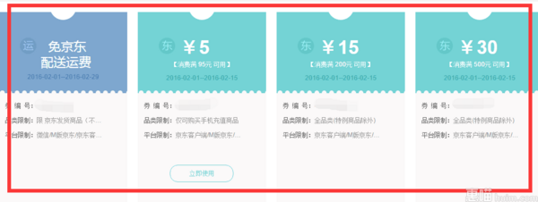 钻石会员可领取到满500减30、满200减15全品类东券、免运费券等,还有满95-5话费充值券,有效期到2月15日;