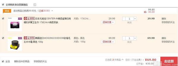 京东全球购目前好价69.9元,凑单日本尤妮佳超薄日用蝶形护翼卫生巾,即可享99元减30的优惠活动,实付69.8元包邮到手哦,折34.9元,是不是炒鸡划算,那就买买买吧~~