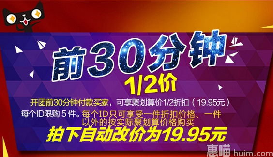 天猫商城目前39.9元在售,10点开抢,前30分钟拍下直接半价,拍下系统直接改价,实付19.95元包邮到手;