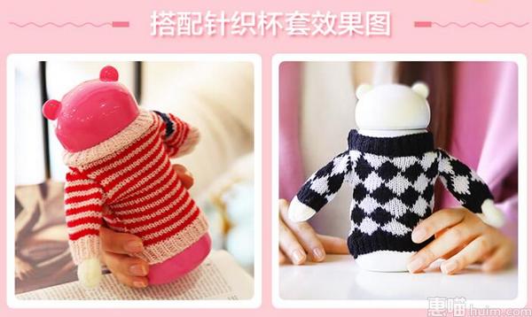 哈尔斯 儿童可爱保温杯,色彩绚丽,时尚5色选择,进口韩国奥氏体304食品级不锈钢材,配有卡通衣服套+手工卡通毛线衣服套,使用起来都觉得萌萌哒~