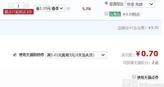 天猫5.7元起包邮,之前推荐过用3元券的,错过的朋友可以考虑使用这次天猫女王节的5元券,拍下后实付0.7元起包邮到手!买买买,夏天快到了,很快就会到有蚊子咯~