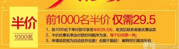 天猫聚划算10点开启59元,前1000名享受半价返现29.5元,需要的朋友蹲点抢购;