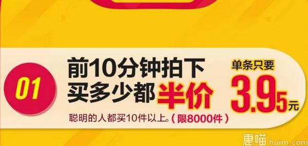 天猫聚划算10点开启7.9元,前10分钟付款享受半价3.9元,系统直降不限购;需要的可以多屯点;