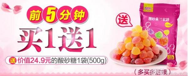 天猫聚划算10点开启32.9元,足足2斤噢!前5分钟付款还送果汁酸砂软糖500g!