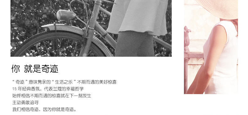 兰蔻的这款香水,规格50ml,发现奇迹:清新小苍兰,鲜活前调;绽放奇迹:迷人芍药香,曼妙中调;你就是奇迹:恬静琥珀香,悠然尾调;全新诠释世纪无暇真爱的特质,适合送给你的那个她!