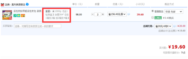 天猫现售价19.8元,拍2发4,还可领取店铺20优惠券,券后实付19.6元到手4箱共8斤!每箱不到5块钱!