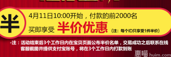 天猫商城10点开启特价8.2元,前2000名拍下享半价返4.1元,需要的盆友可以入!