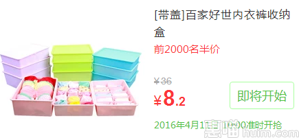 前2000名# 百家好世 内衣文胸袜子有盖塑料收纳盒 8.2返4.1元