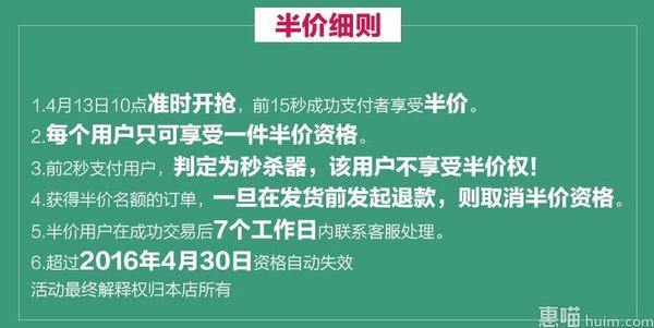 天猫聚划算10点开启特价59元,前15秒拍下享半价返29.5元,下单还赠2片,折2.45元/片,需要的盆友记得蹲点哦~