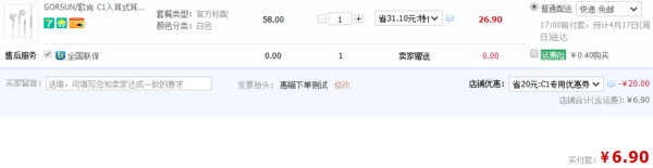 天猫现价26.9元,惠喵们还可领取20元优惠券,下单只要6.9元,超级白菜的价格还包邮,喜欢的朋友可以入手,当然这个价位要求比较高的就勿入啦。