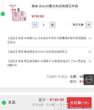 京东手Q端特价199元,直接参加满199-50的活动,实付149元包邮到手,买还送芦荟胶35g+卸妆水200ml+面膜3片,实属入手好价了,喜欢的喵友不要错过~