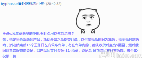 天猫海外旗舰店目前62元在售,10点开始,前500名拍下并付款成功的喵友,可以享受半价返现的优惠,相当于31元到手,便宜大碗呀,这款相对而言少人抢,心水的盆友可以蹲点抢一抢~