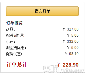 亚马逊现售价327元,下单可使用7折优惠码XEVXTKPIOC5R,下单立减,实际到手价格228.9元,价格新低,同款天猫商城价格都在399元。