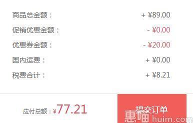 达令目前89元在售,可使用惠喵推荐的满89-20券,再加上8.21元税费,实付77.21元包邮到手,近期好价,需要的妹纸可以入啦!