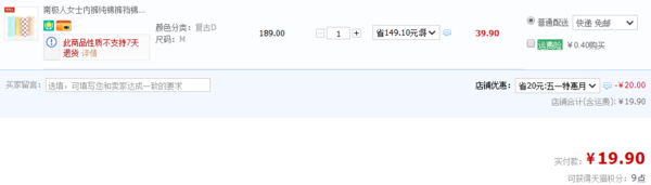 天猫现价39.9元,可领取20元优惠券,下单实付19.9元包邮,共多色可选。