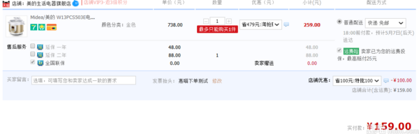 天猫官方旗舰店售价259,喵友们领取满258-100券,实付159元包邮到手,买还送刀具4件套,历史新低价,以前最低也要199元喔,同款京东299元在售。