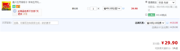 天猫现价39.9元,可领取10元优惠券,下单实付29.9元包邮,虽然端午节还没到,但是粽子可以提前吃呀~