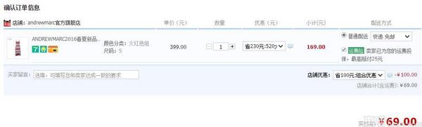 天猫旗舰店目前169元在售,可以使用店铺100元券,实付69元包邮,多码可选。