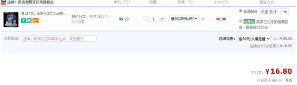 天猫旗舰店现价46.8元,可领取30元优惠券,下单实付16.8元包邮,各位男神们看中了就带走吧~
