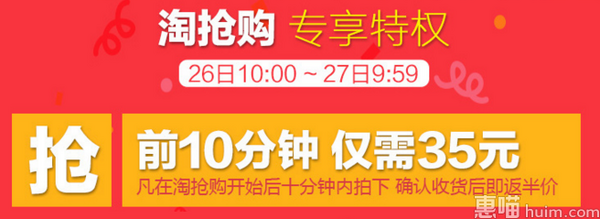 天猫旗舰店10点开启68元,前10分钟拍下享受返现33元,相当于35元到手!具体操作详见下图。