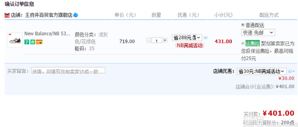天猫王府井百货活动价431元,拍下自动满400减30,实付401元包邮。目前还有小码,小脚的菇凉快快入手啦~