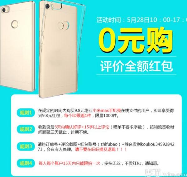 小米MAX手机壳第一次活动哦,1000个名额,有手机的亲怎能错过呢~