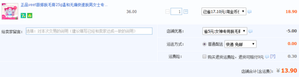 淘宝企业店铺售价18.9元,喵友们还可以领取5元优惠券(新补券),券后实付13.9元包邮,价格不错,夏天女神的丝滑秘诀,速速入手哟~