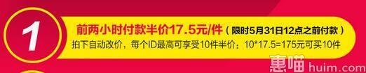 聚划算10点特价35元,前2小时享受半价优惠,拍下后系统自动改价,下单实付17.5元包邮。