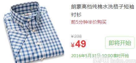 前5分钟# 朗蒙 2016夏季新款纯棉水洗休闲衬衣 24.5元(49返24.5)