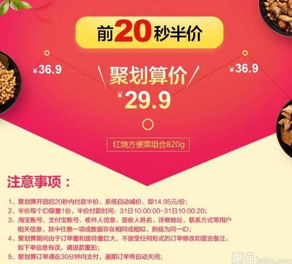 天猫聚划算10点特价29.9元,前20秒拍下享半价系统立减14.95元,实付14.95元包邮到手,单买好价,喜欢的盆友不要错过哦~