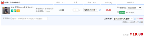 天猫售价39.8元,喵友们还可以领取20元优惠券,券后实付19.8元,价格不错,家长们可以给家里的小帅哥换新装啦~