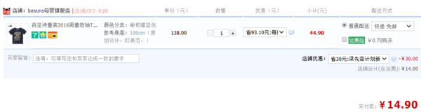 天猫售价44.9元,喵友们还可以领取30元优惠券,券后实付14.9元包邮,价格不错啦,喜欢的家长可以入手啦,打扮下家里的小帅哥哟~