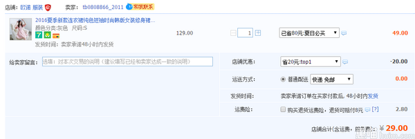 淘宝企业店现售价49元,下单领取20元优惠券,实付29元包邮。