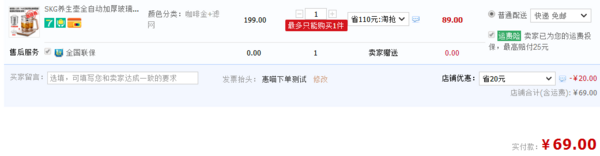 天猫现售价89元,可领取20元优惠券,下单实付69元包邮,多色可选,除了家里宿舍里买一个用也不错呀~