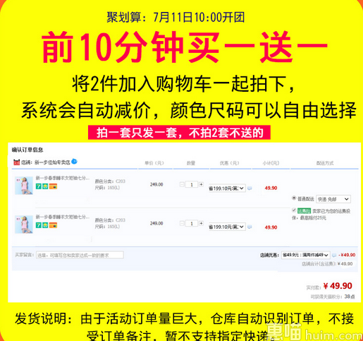 天猫专卖店10点开启49.9元,前10分钟拍下付款的盆友享受买一送一的优惠,实际到手2件,颜色粉嫩,喜欢的朋友可入手哦。