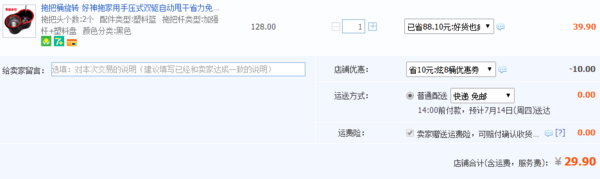 淘宝企业店现售价39.9元,下单领取10元优惠券,券后实付29.9元包邮。