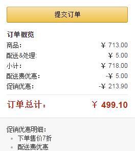 亚马逊售价713元,在价格下方领取7折优惠码,下单实付499.1元包邮到手,近期低价,尺码齐全,款式很棒哦,喜欢的喵友买买买!