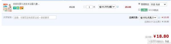 天猫现价28.8元,买1送1,还可领取10元优惠券,下单实付18.8元包邮,折9.4元/瓶,需要的宝妈可以入手啦~